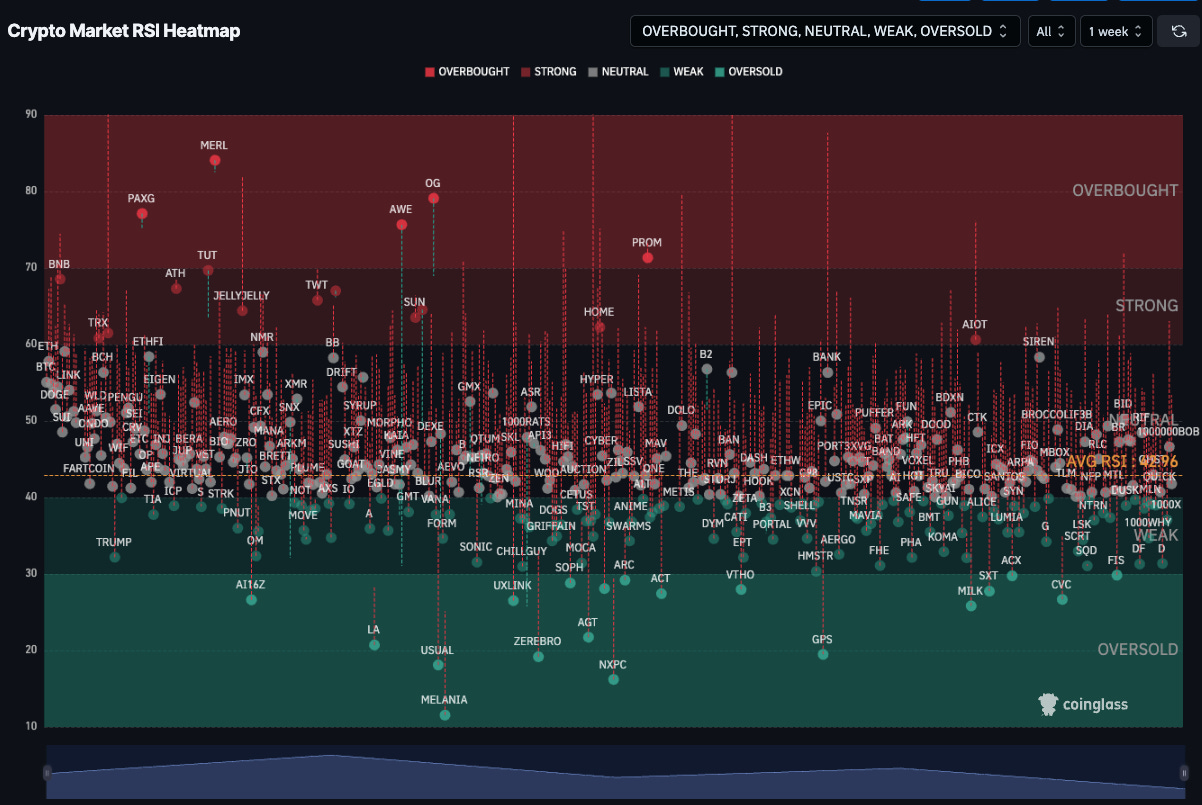 The RSI heatmap is showing us the same outcome: thereās still more downside before a reset, as the majority of altcoins remain in neutral territory right now.