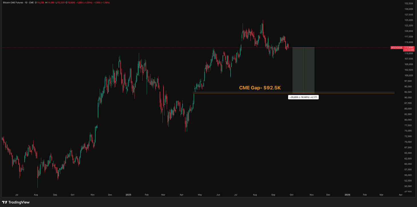 The CME gap just below currently sits at $92.5K.