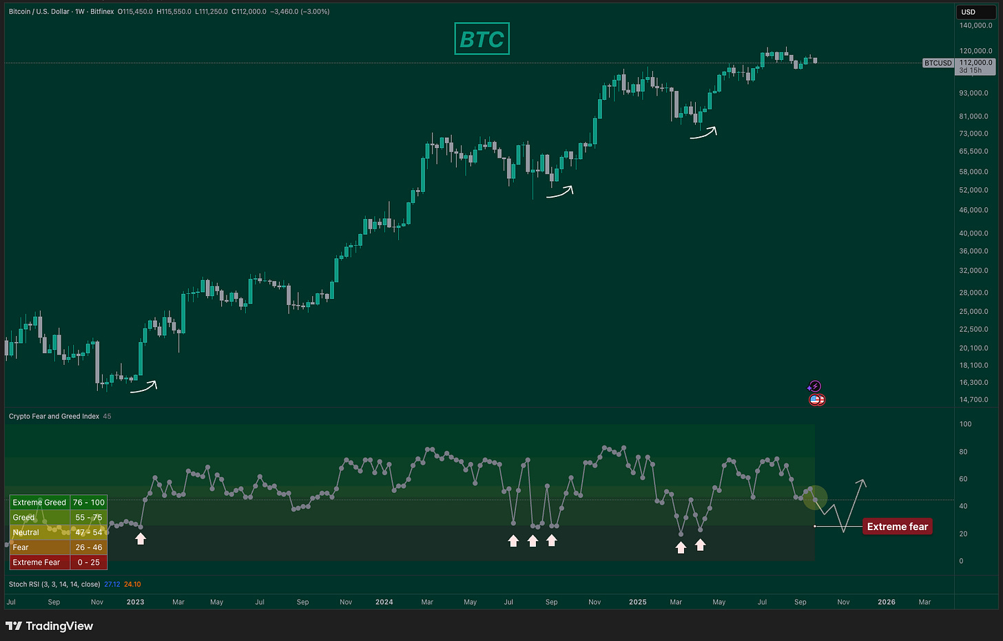 These zones are where risk/reward shifts, sentiment flips, and participants start questioning whether the cycle is truly over. Weāre unlikely to see this until Fear & Greed reaches extreme lows and altcoins suffer deeper bleed-outs.