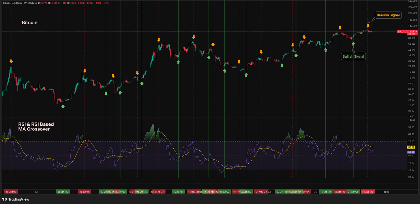 And if you look at the Bitcoin RSI crossover, it doesnāt happen often. We had a bearish crossover on August 11, and so far no bullish signal, which basically tells us to stay patient.