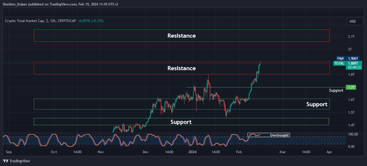 First off, let’s just touch on this. The Total Crypto Market Cap (TOTAL) is increasing at a fast rate!