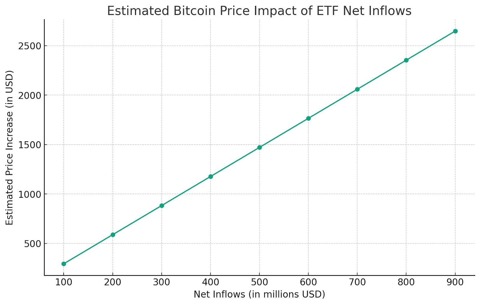 Every $1 billion USD net inflow = $2,900 increase in BTC price