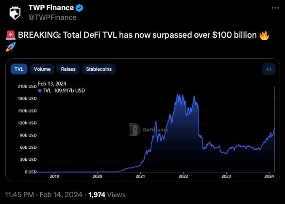 It pretty much answers the question above. The Total value Locked (TVL) across all DeFi Protocols has gone over $100 billion. So, while a ton of shiny new DeFi projects aren’t spamming our timelines, it doesn't mean things aren’t happening in the background.