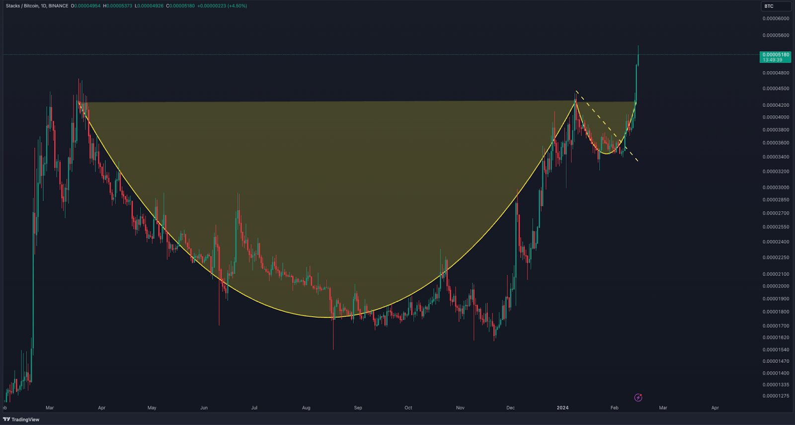 Not only is Stacks looking extremely bullish, it could actually outperform Bitcoin! Just look at what it is doing when compared to Bitcoin on the charts!